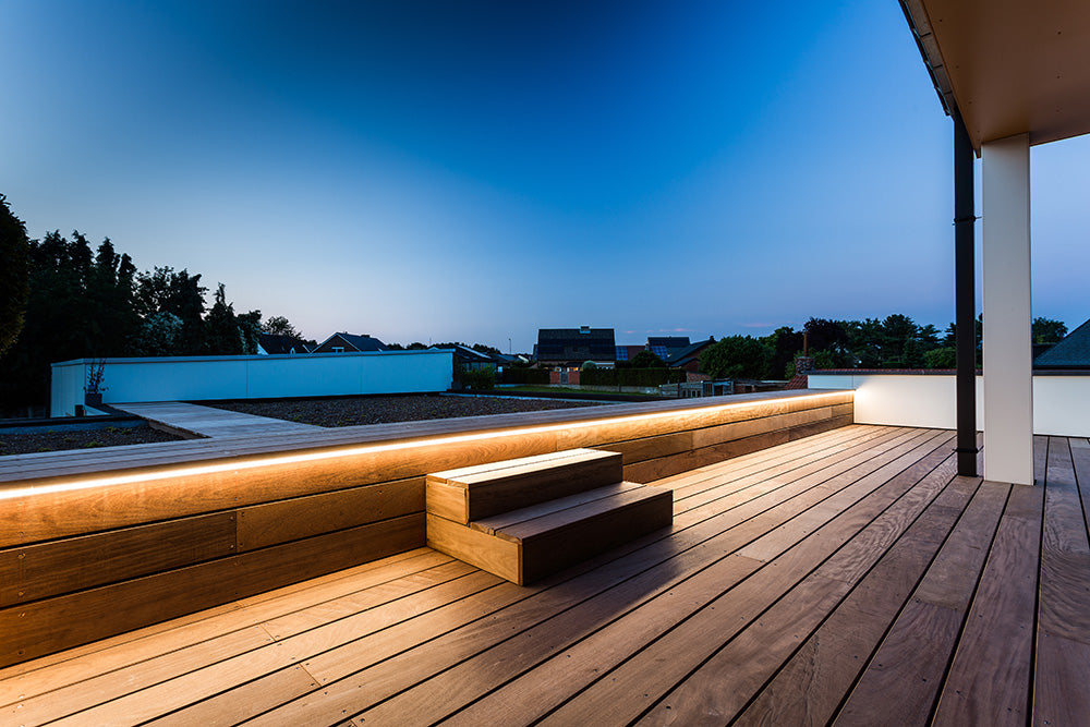 Terassin valaistus on näppärää toteuttaa tyylikkäällä LED-valonauhalla. Kaide LED-nauhalla on tyylikäs lisä pihaan kuin pihaan.