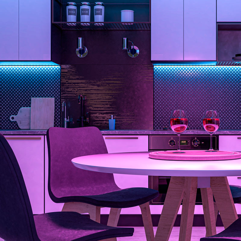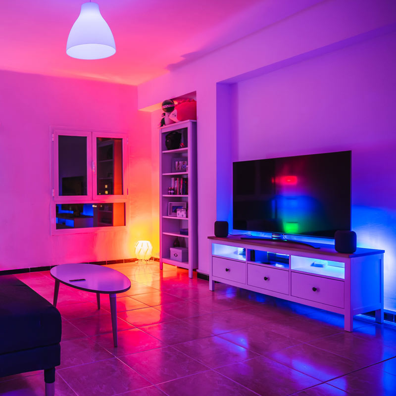 Multicolour or colour-changing RGB+ LEDribbons offer a wide range of colour options and can be controlled by different controllers, making multi-coloured LED-strips are an excellent choice for a variety of lighting applications. These LED-ribbons are an excellent choice for colourful lighting for home entertainment, parties or corporate events. They are also an environmentally friendly and energy-efficient alternative to traditional lighting.
