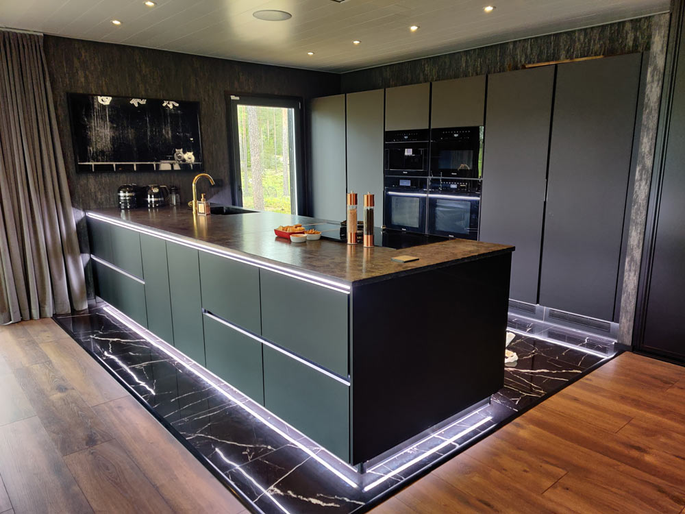 Saat meiltä halutessasi koko keittiön valaistuksen valmiina asennettavaksi - valmiiksi koottuna toiveidesi mukaan.