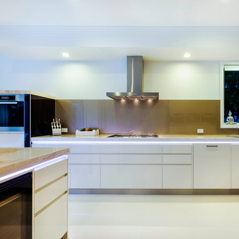 LED-nauhat ovat erittäin tehokas ja käytännöllinen valinta keittiön valaistukseen. Ne tuottavat tasaisesti häikäisemätöntä valoa työtasoille ja kaapinoville, ja niitä voidaan asentaa helposti esimerkiksi alumiiniprofiilien sisään. LED-nauhat ovat energiatehokkaita, pitkäikäisiä ja ne lämpenevät vain vähän, mikä tekee niistä turvallisia käyttää myös ahtaissa kohteissa.