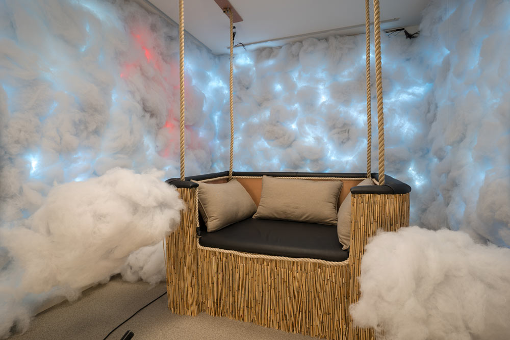 BB-fanit laskevat jo sänkyjä, vetäessään johtopäätöksiä talosta puuttuvien asukkaiden lukumäärästä. Tivolimainen väritys toistuu myös makuuhuoneessa, ja LED-lamput riippuvat siskonpedin yllä. Parvisängyn alle jää sopivasti jälleen yksi paikka taktikointipalavereille.