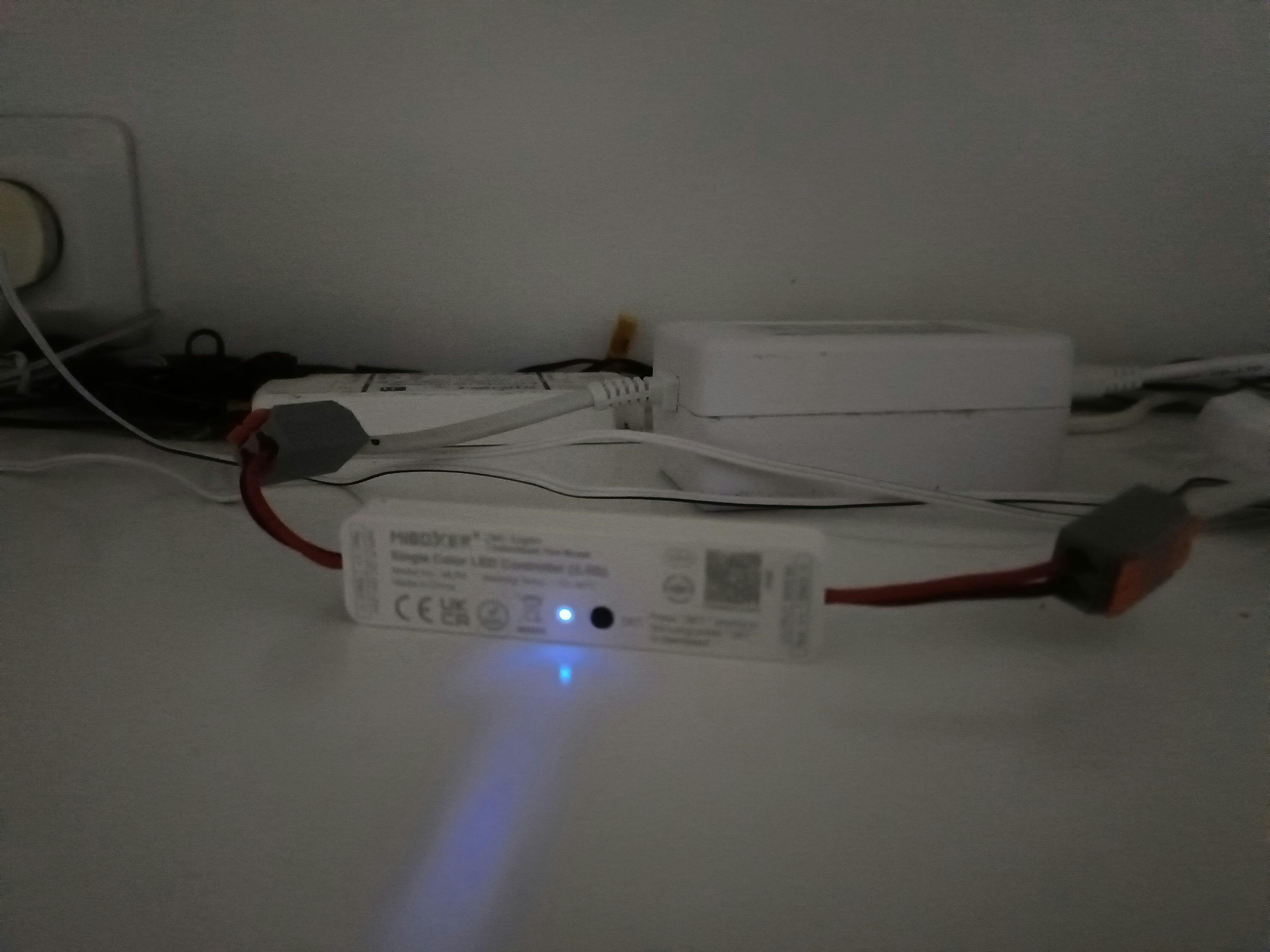 - Vedä led-nauhalta pistoke irti seinästä (tai sammuta valot muuten) -> Odota 10sek. valo pois päältä (valojen sammuttamisen sijaan voit myös painaa vastaanottimen SET-nappia lyhyesti aktivoidaksesi paritustilan)